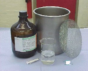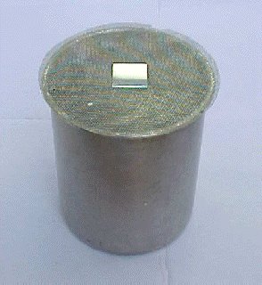 The stainless steel mesh and the glass strip are placed on top of the container. The silver samples will be tested on top of the glass strip.