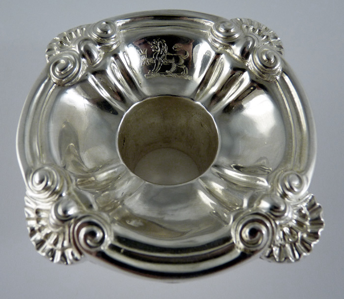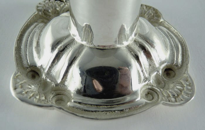 You are looking at a fine silver bobeche that is an exact reprduction from the sterling original. Notice the how crisp the engraving is.