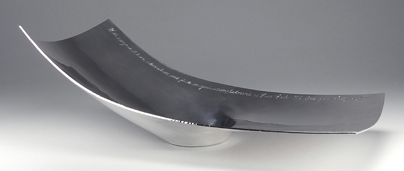 Sterling sculpture with edge thickening created for the president of Coca-Cola. 11" x 5" x 4". |