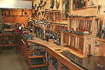 Many people think all silver objects are simply cast and polished - that includes tea sets, flatware, and other useful and sculptural works of art. This couldn't be farther from the truth. In fact, silversmiths must make a huge investment in tools, equipment, and even space to fabricate and forge what you may be using or have displayed in your home. Many tools are handwrought or machined for specific jobs that may never be used again. Pictured below are selected views of Artisan workshops and how they're organized. |